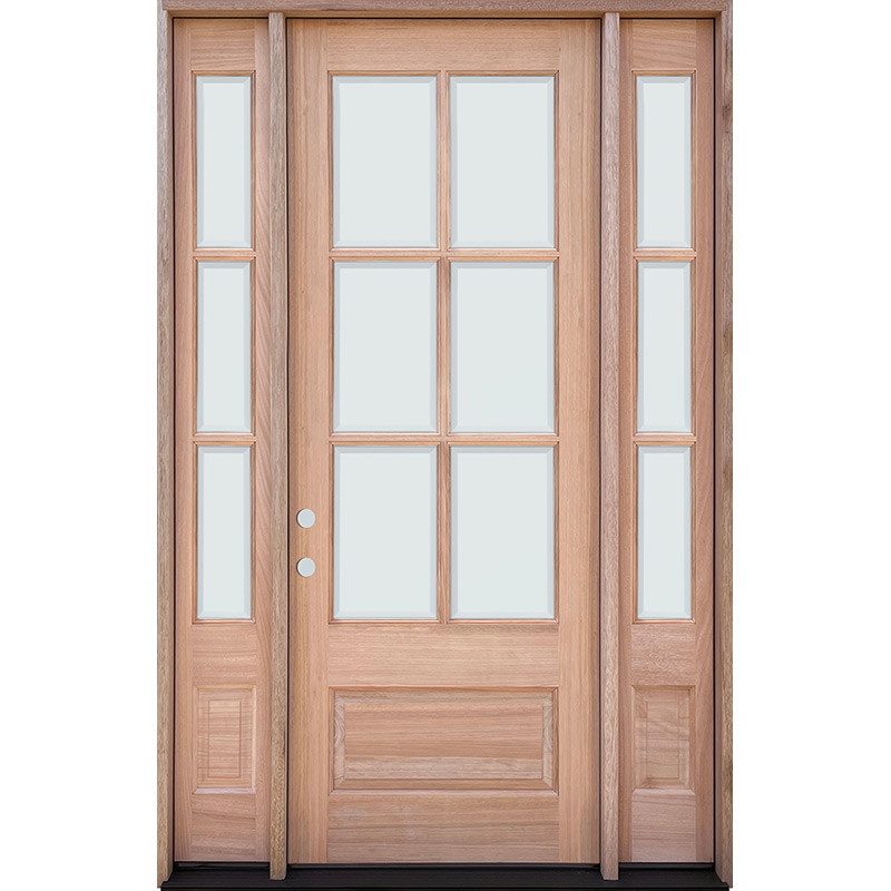 8'0" Tall 6-Lite Low-E Mahogany Prehung Wood Door Unit with Sidelites