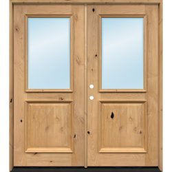 Half Lite Low-E Knotty Alder Wood Double Door Unit