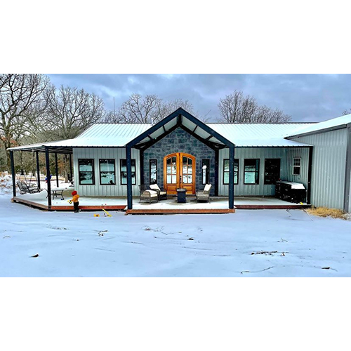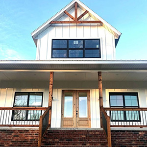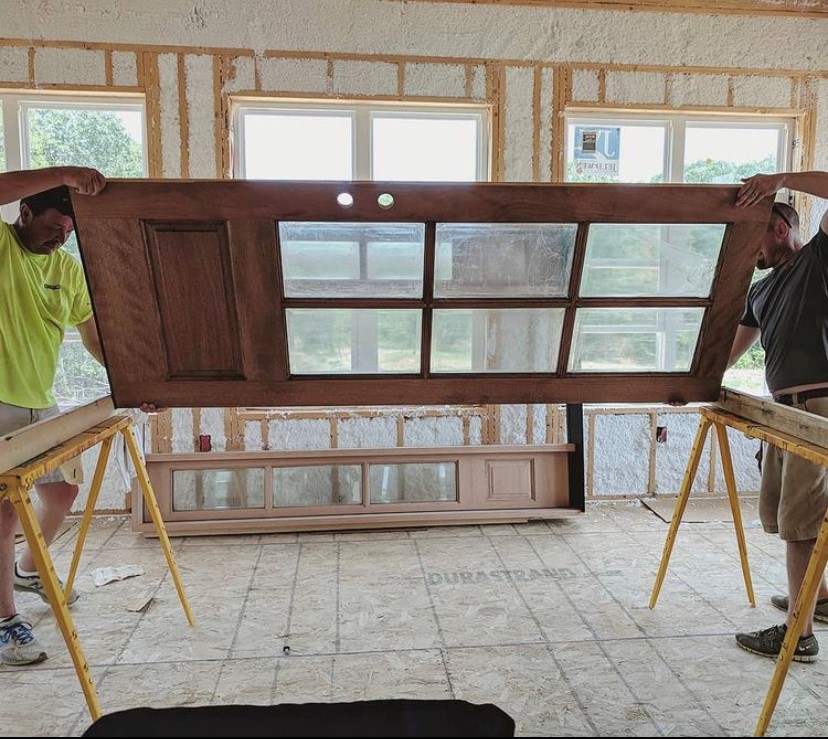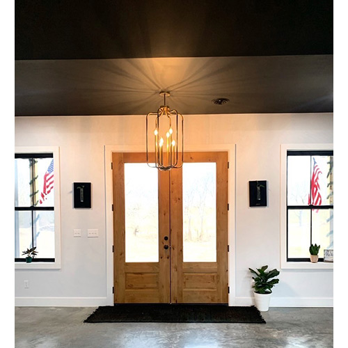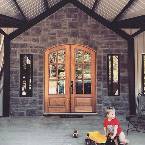 The unique world of barndominiums have captured the attention of many and the Taylors were no different. They stepped out of the box and enjoyed every minute designing their dream home. One of the dreams that seemed out of reach were the large arched exterior doors, which is why they were so thrilled to stumble upon the Door Clearance Center! Erin relates "I was blown away at the difference in prices! I literally got 3 sets of double doors, for less than the price of 1 set of double doors elsewhere! The quality is unreal and the beauty literally cannot be matched! And, I couldn't believe how easy they were to order!" You can see for yourself in the photos, the natural contrasts between the metal roof, the stone and the rustic wood doors make this a distinct and individual living space. Erin said it best, "The doors truly made our house a home!"