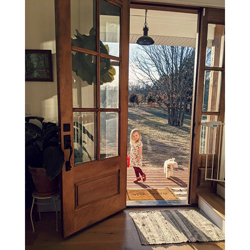 When we saw Kathy's photos, we immediately felt welcomed into their home. In fact, they chose the mahogany door with sidelites because it was so inviting. In addition to the welcoming curb appeal, she loves that the front door “leaves the room feeling bright and airy.” Kathy shares this sweet sentiment, “The windows are the perfect height for my toddler to gaze out and watch for his dad to come home.” We cannot think of a more lovely example of how one design element can become such an integral part of so many cherished memories.