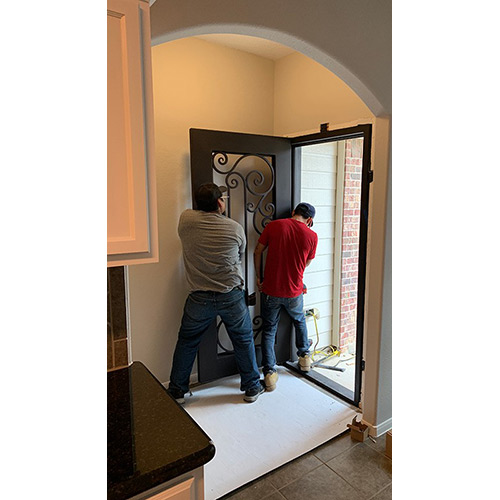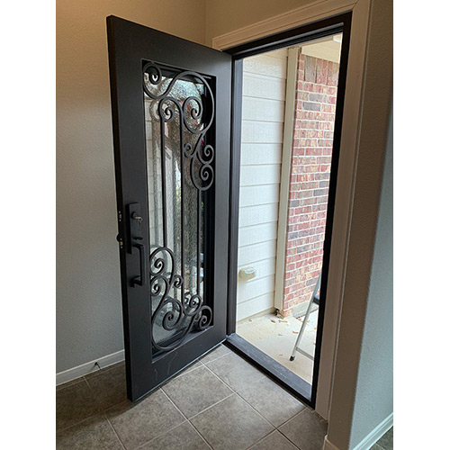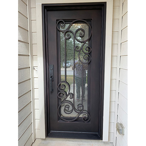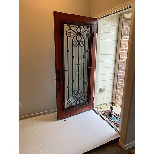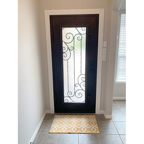 While the original mahogany wood door was a classic, the location of the door made it a high maintenance headache! The wood finish would take a beating from the elements - sunshine and rain! JS relates, "it just required constant attention and was starting to look a bit dated." He found a solid solution with this modern styled iron door. They are thrilled with this low maintenance upgrade that gives the added benefit of the security of an iron door and frame.