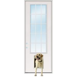 8'0" Tall 15-Lite Fiberglass Prehung Door Unit with Pet Door Installed