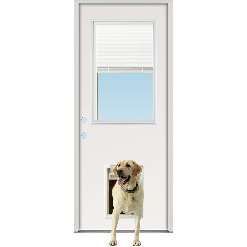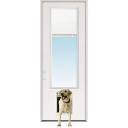 Mini-blind Half Lite Fiberglass Prehung Door Unit with Pet Door Installed