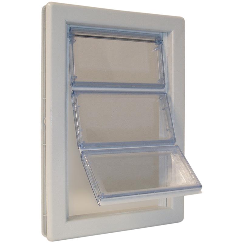 • Pet door includes multi-flex dual pane hard panels with an air gap for maximum energy efficiency and wind resistance