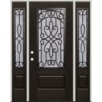 Finished Fiberglass Prehung Door Unit with Sidelites with Iron Grille #62
