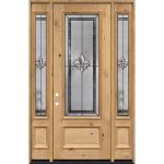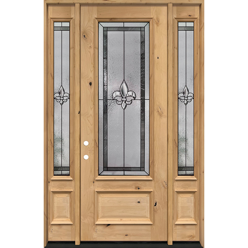 Fleur-de-lis 8'0" Tall 3/4 Lite Knotty Alder Wood Door Unit with Sidelites #84