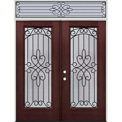 64" x 81" Baton Rouge Iron Prehung Door Unit with Sidelites