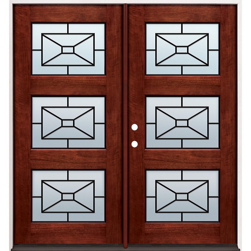 3-Lite Modern Grille Mahogany Prehung Double Wood Door Unit #353