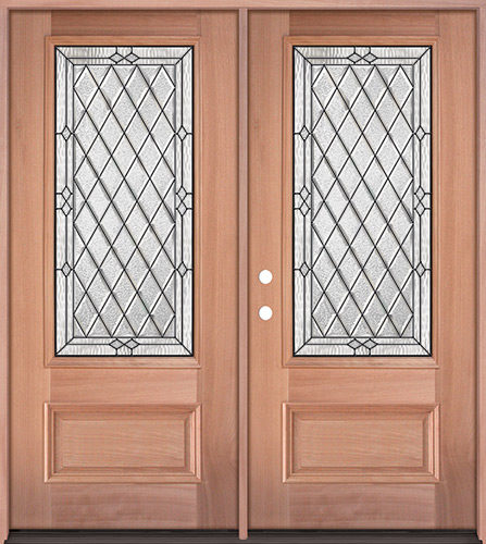 Diamond 3/4 Lite Mahogany Wood Double Door Unit #274