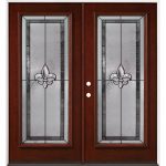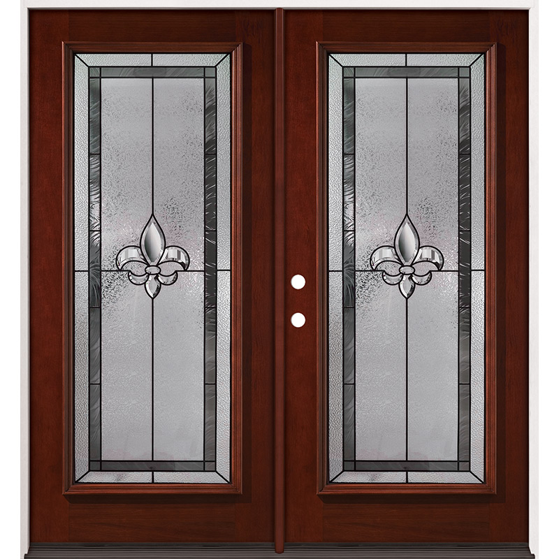 Fleur-de-lis Full Lite Mahogany Prehung Double Wood Door Unit #84