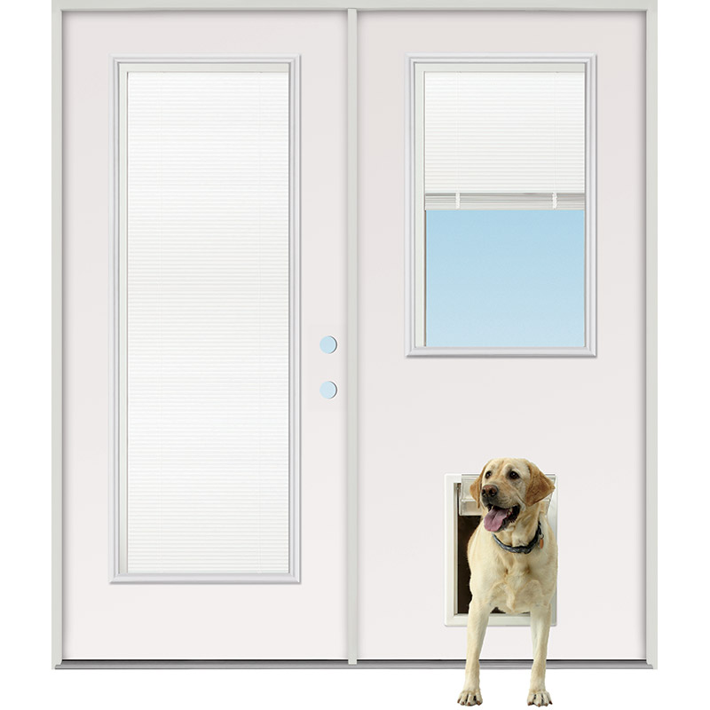 Mini-blind Full/Half Lite Fiberglass Patio Prehung Double Door Unit with Pet Door Installed
