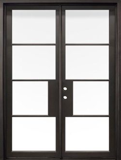 • 62" x 97" Modern 4-Lite Iron Prehung Double Door Unit