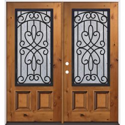 3/4 Iron Grille Pre-stained Knotty Alder Prehung Double Wood Door Unit #62