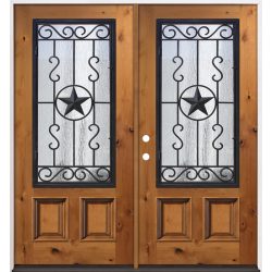 Star Iron Grille Pre-stained Knotty Alder Prehung Double Wood Door Unit #75