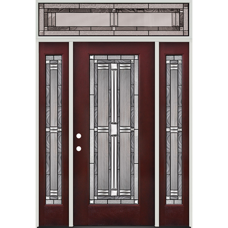 Full Lite Pre-finished Mahogany Fiberglass Prehung Door Unit with Transom #297