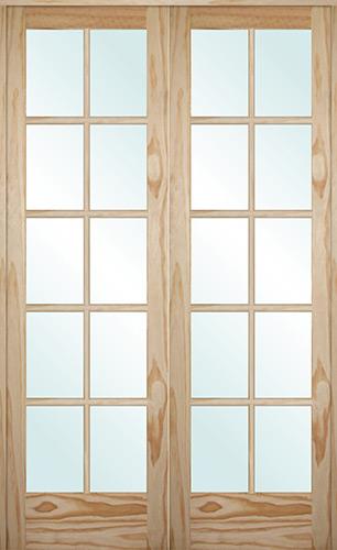 4'0": 6'8" Tall 10-Lite Pine Interior Prehung Double Wood Door Unit