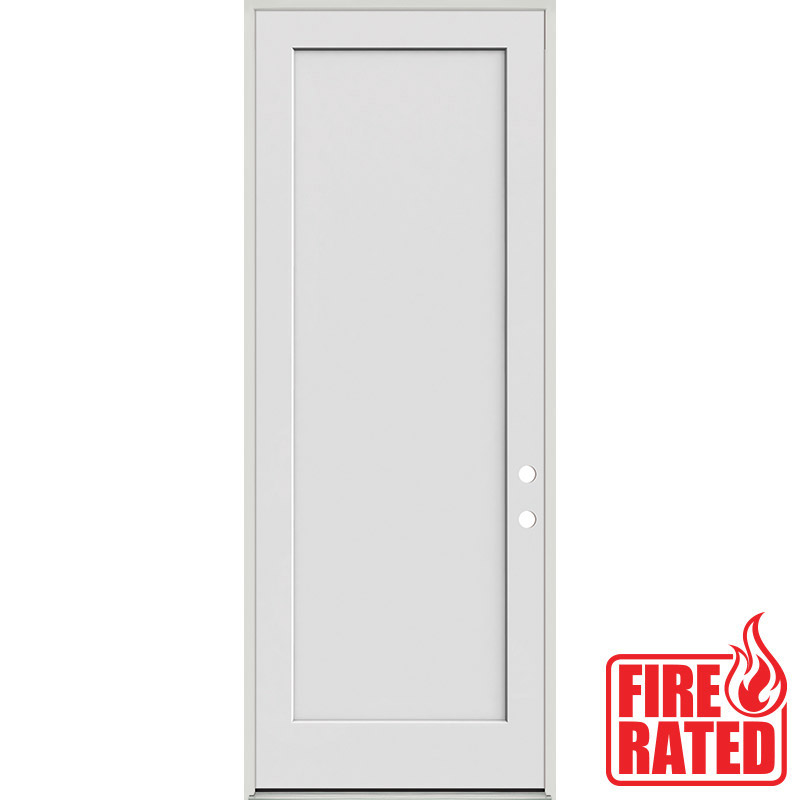 Fire Rated 8'0" Tall 1-Panel Shaker Primed Interior Prehung Wood Door Unit