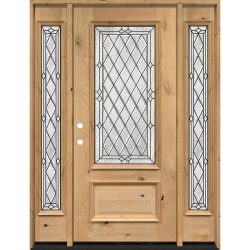 Diamond 3/4 Lite Knotty Alder Wood Door Unit with Sidelites #274