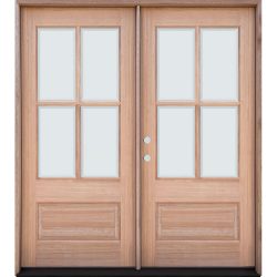 4-Lite Low-E Mahogany Prehung Wood Double Door Unit