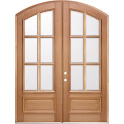 8'0" Tall 6-Lite IG Mahogany Arch Top Prehung Double Wood Door Unit