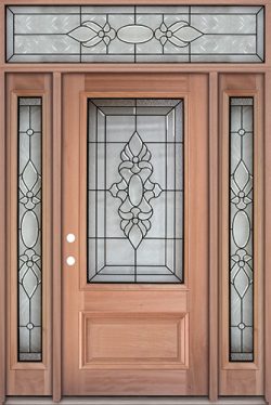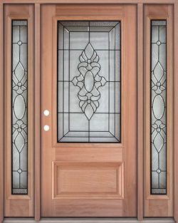 3/4 Lite Mahogany Prehung Wood Door Unit with Sidelites #UM73