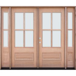 4-Lite Low-E Mahogany Prehung Wood Double Door Unit with Sidelites