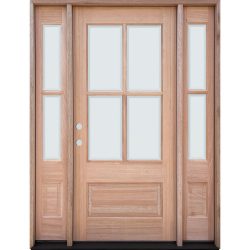 4-Lite Low-E Mahogany Prehung Wood Door Unit with Sidelites