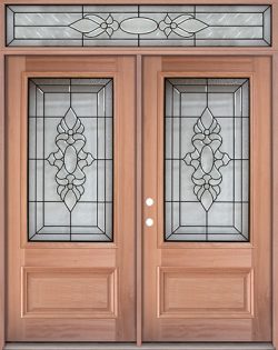 3/4 Lite Mahogany Prehung Wood Double Door Unit with Transom #UM73