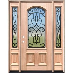 2/3 Arch Grille Mahogany Prehung Wood Door Unit with Sidelites #623