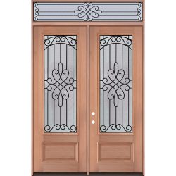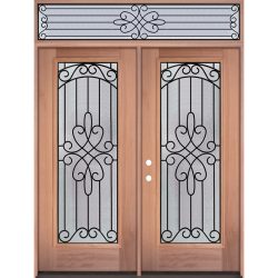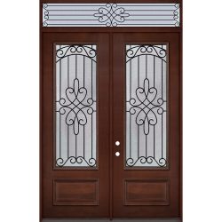 Full Lite Mahogany Wood Double Door Unit with Transom #299