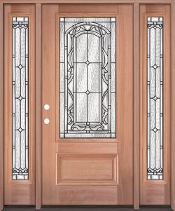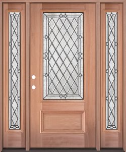 Diamond 3/4 Lite Mahogany Wood Door Unit with Sidelites #274