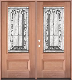Fleur-de-lis 8'0" Tall 3/4 Lite Pre-finished Mahogany Wood Double Door Unit #84