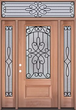 Fleur-de-lis 8'0" Tall 3/4 Lite Mahogany Wood Door Unit with Transom #84