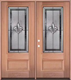 Fleur-de-lis 3/4 Lite Mahogany Wood Double Door Unit #48