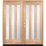 Vertical 3-Lite Modern Unfinished Mahogany Wood Double Door Unit