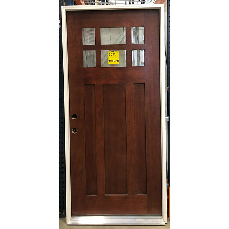 3/0 x 6/8 Prefinished Mahogany 6-Lite Craftsman RH