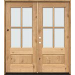 4-Lite Low-E Knotty Alder Prehung Wood Double Door Unit