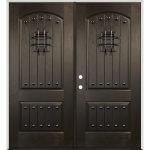 Rustic Finished Fiberglass Prehung Double Door Unit with Speakeasy