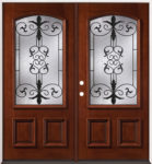 3/4 Arch Mahogany Prehung Double Wood Door Unit #54
