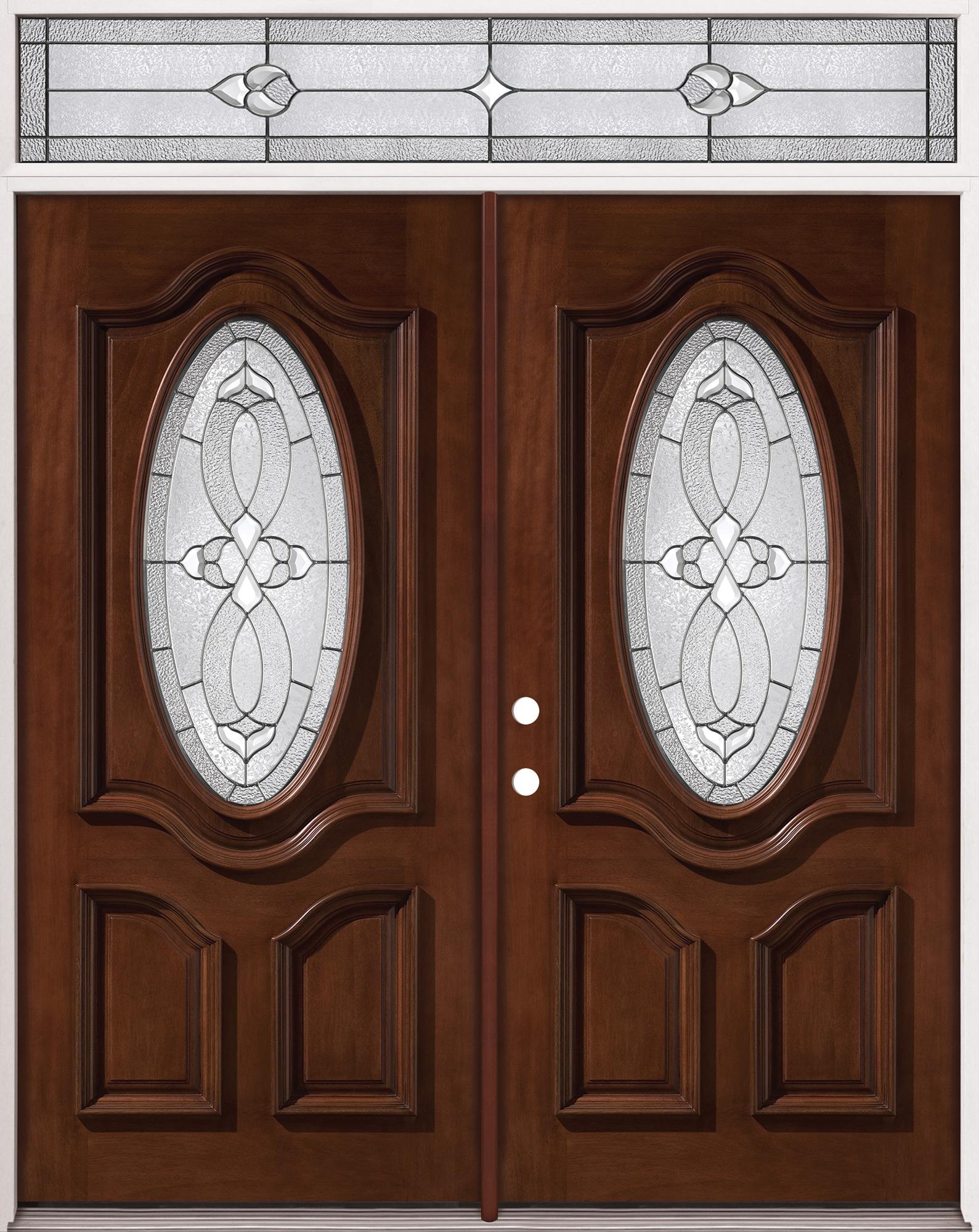 3/4 Oval Mahogany Prehung Wood Double Door Unit with Transom #86