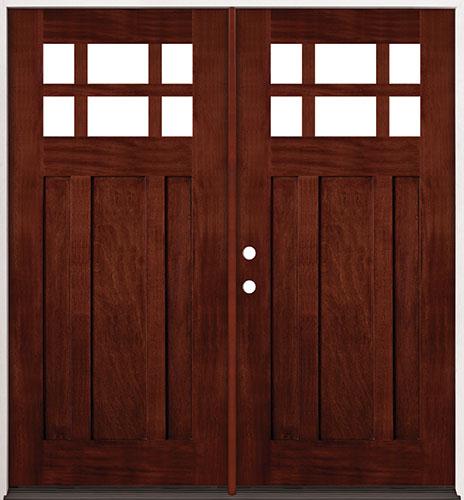 6-Lite Craftsman Mahogany Prehung Double Wood Door Unit #43
