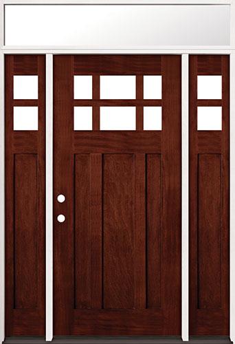 6-Lite Craftsman Mahogany Prehung Wood Door Unit with Transom #43