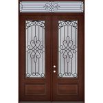 8'0" Tall 3/4 Lite Pre-finished Mahogany Wood Double Door Unit with Transom #299