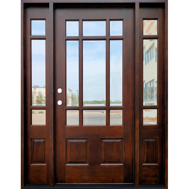 9-Lite Espresso Mahogany Prehung Wood Door Unit with Sidelites #EM32