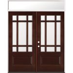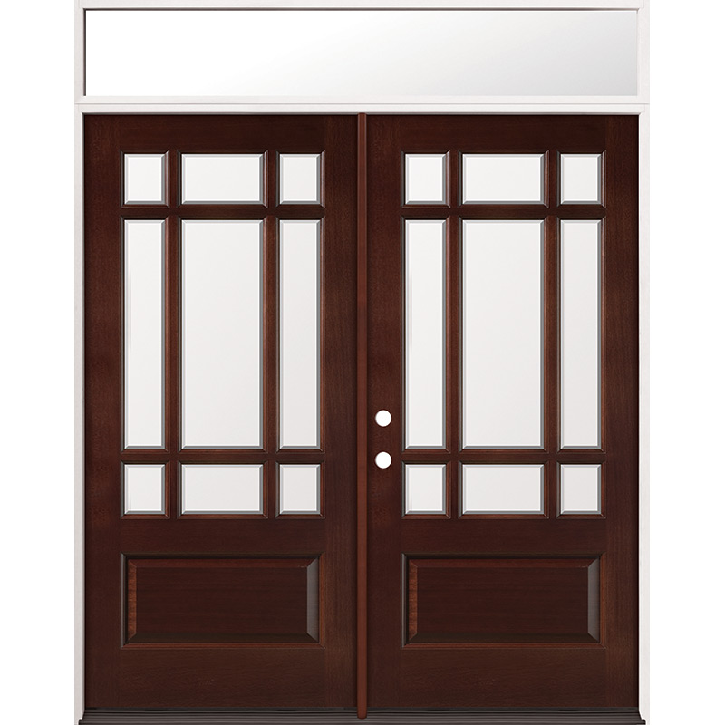 9-Lite Prairie Craftsman Mahogany Prehung Wood Double Door Unit with Transom #32