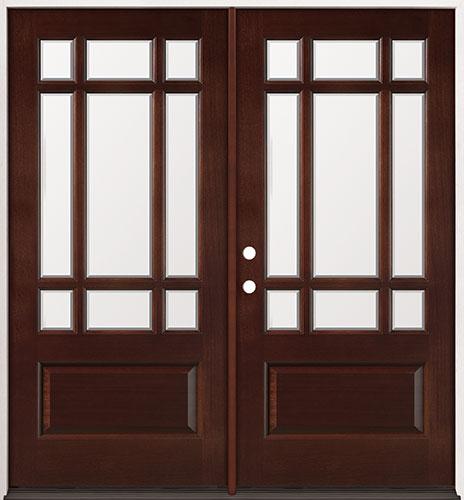 9-Lite Prairie Mahogany Prehung Double Wood Door Unit #32