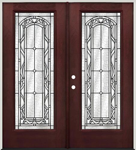 Full Lite Pre-finished Mahogany Fiberglass Prehung Double Door Unit #292