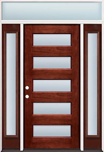 Modern 5-Lite Mahogany Prehung Wood Door Unit with Transom #305