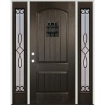 Rustic Finished Fiberglass Prehung Door Unit with Sidelites & Metal Speakeasy